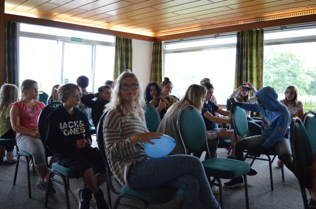 Heute morgen trafen wir uns zum WarmUp-Spiel „Einst ging ich die Straße rauf und runter“ pünktlich um 9:00 Uhr vorm Haus. Wachgespielt ging es dann zum Frühstück und danach zum Kiosk, um die Süßigkeiten-Vorräte wieder aufzufüllen. Beim ersten Programmpunkt durfte sich jeder einen Briefumschlag bemalen, damit jeder B-Mails empfangen kann. B-Mails sind die SMS des Lagers um sich nette Nachrichten zu schreiben oder kleine Geschenke zukommen zu lassen. Vor allem die Schutzengel können davon profitieren, denn alle Teilnehmer*innen und Leiter*innen haben jemand anderes aus dem Lager als Schützling zugewiesen bekommen und haben die Aufgabe ganz lieb zu diesem zu sein und ihm das Lager durch Nettigkeiten und kleine Geschenke zu versüßen. Außerdem ging es für eine kleine Gruppe 6km wandern während die restlichen Teilnehmer Gesellschaftsspiele gespielt und gebastelt haben. Zum Mittagessen gab es Kartoffelauflauf und danach ging es in die Siesta. Zum Nachmittagsprogramm waren wir draußen im Wald um Stratego zu spielen, jedoch wurden wir von einer starken Gewitterwarnung überrascht und von Kopf bis Fuß durchnässt. Nachdem wir uns alle geduscht und umgezogen haben, gab es dann als Alternativprogramm eine große Runde Werwölfe von Düsterwald. Danach gab es auch schon Abendessen und die Oase, bei welcher Harry Potter gehört und sich ausgeruht wurde. Beim Abendprogramm durften die Teilnehmer mal zeigen, was für ein gutes Team sie schon sind. Zusammen haben sie erfolgreich Vertrauens- und Kooperationsspiele gespielt. Am Ende der Happy Hour kamen dann die Zimmer-Buddy’s auf die Zimmer um nochmal den Tag zu reflektieren, etwas vorzulesen oder die Haare zu flechten.